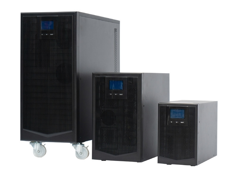UPS Monofase OnLine a doppia conversione, con fattore di potenza in uscita pari a 1 (KVA=KW). Dimensioni ridotte e display grafico LCD.